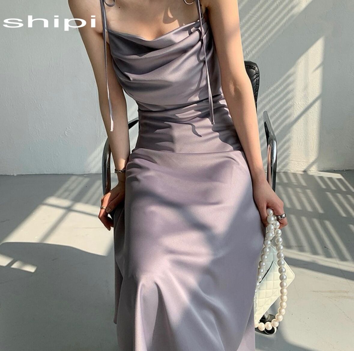 サテンキャミワンピ
