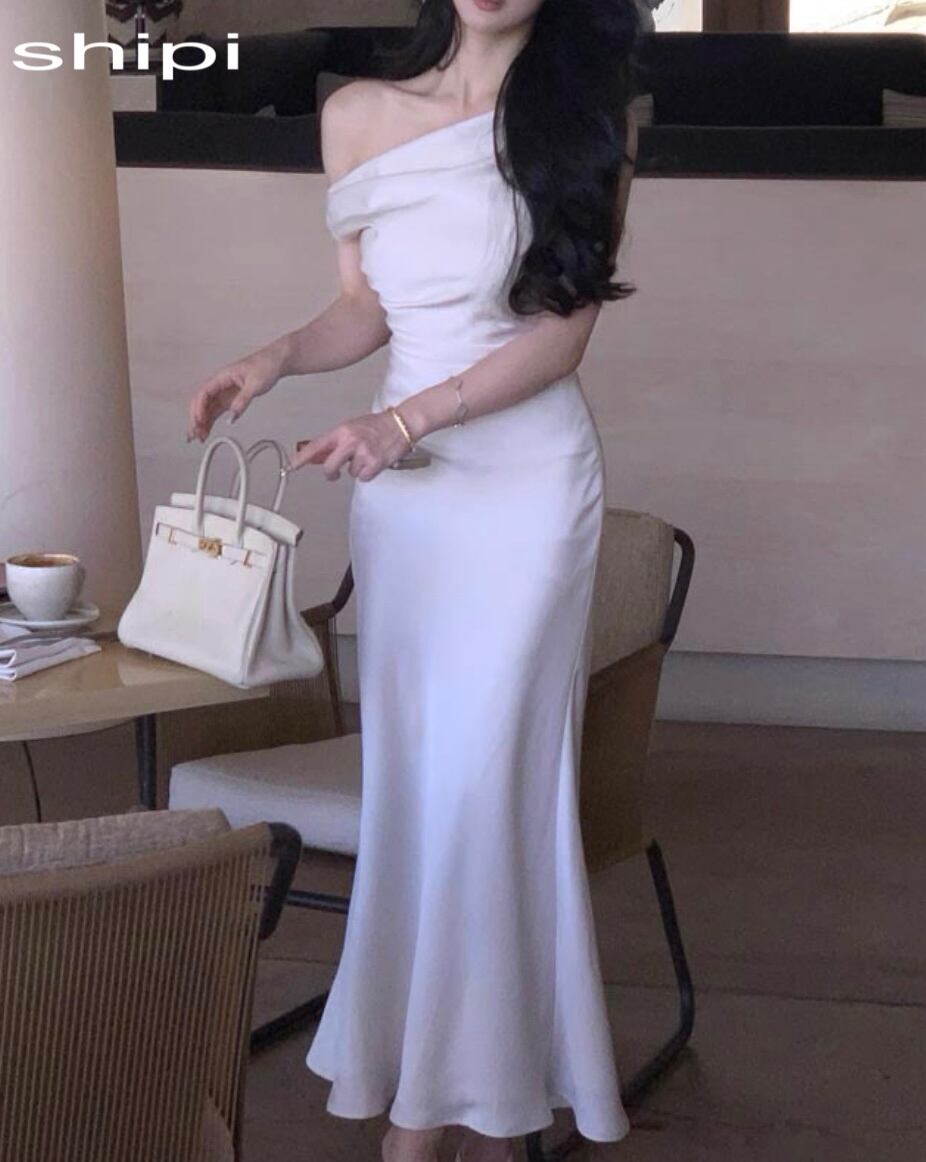 サテンオフィショルスリットドレス